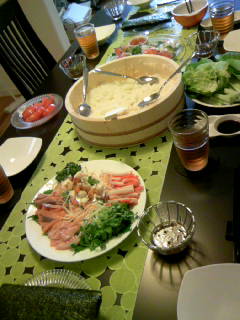ひさしぶりに集まりましたよ。場所はしず亭、手巻き寿司でわいわいです♪