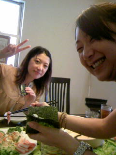 ←手巻き寿司を作る恵ちゃんとVサインのわたしもちゃん。