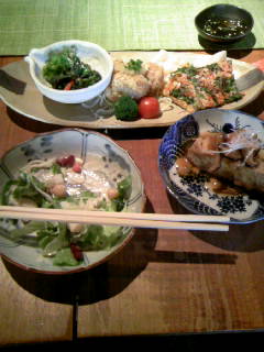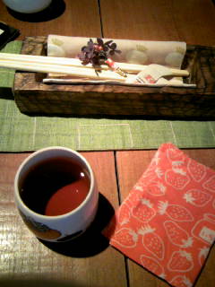 →右下の和柄布がおしぼり。箸箱もかわいー。