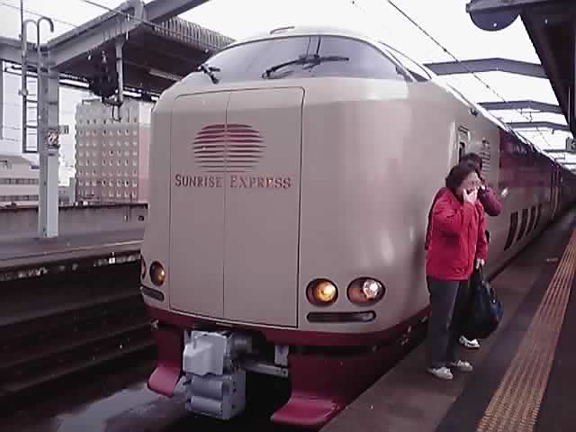 降り立ったホームでやることは、もちろんこれ、サンライズ出雲と写真撮影!