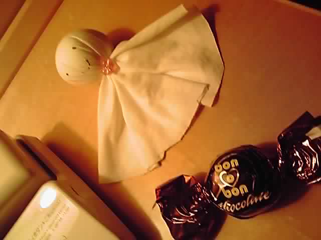 あと、前日が雨だったんですが、ホテルの部屋入ったらてるてるぼうずがあって。